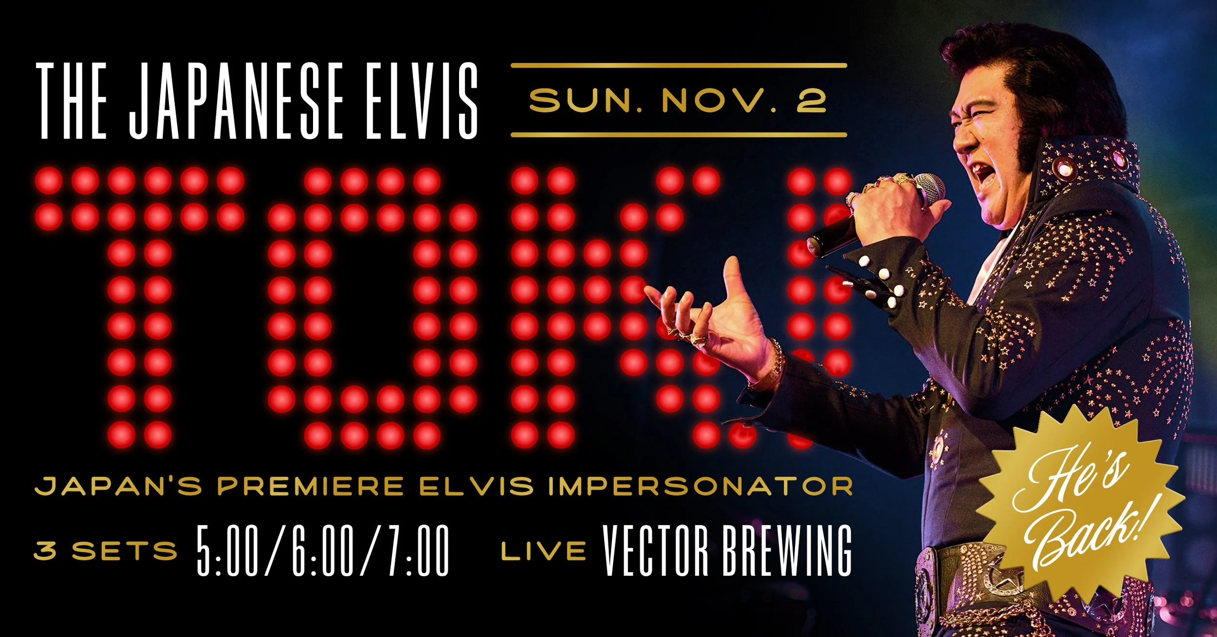The world’s premiere (and most unique) Elvis impersonator is making a pit stop at Vector Brewing for a return performance! There are 3 showtimes: 5pm, 6pm, and 7pm.